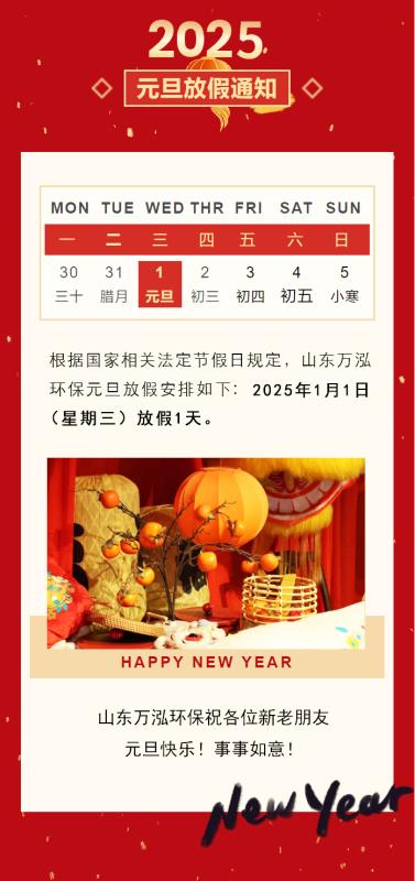 歲序更替,萬象啟新——萬泓環(huán)保祝大家2025元旦快樂!