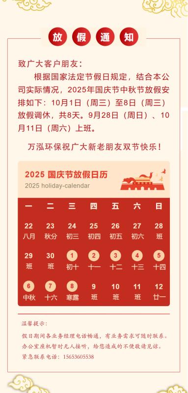 筑夢(mèng)燈火萬家,同慶盛世中華。明月如詩,與國同慶。山東萬泓環(huán)保祝大家2025國慶中秋雙節(jié)快樂!